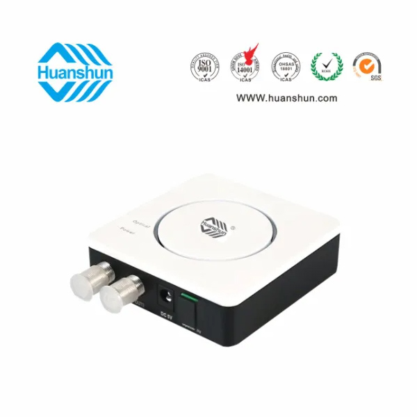 環順的HSGS10076D/2光接收機是專為CATV網絡的FTTH 應用而設計的入戶型光接收機。具有結構小巧緊湊、式樣美觀、 應用方便等 特點,在高達1000Mhz的帶寬下能夠提供穩定的輸出電平和優異的性能指標,具有極寬的光功率工作范圍。