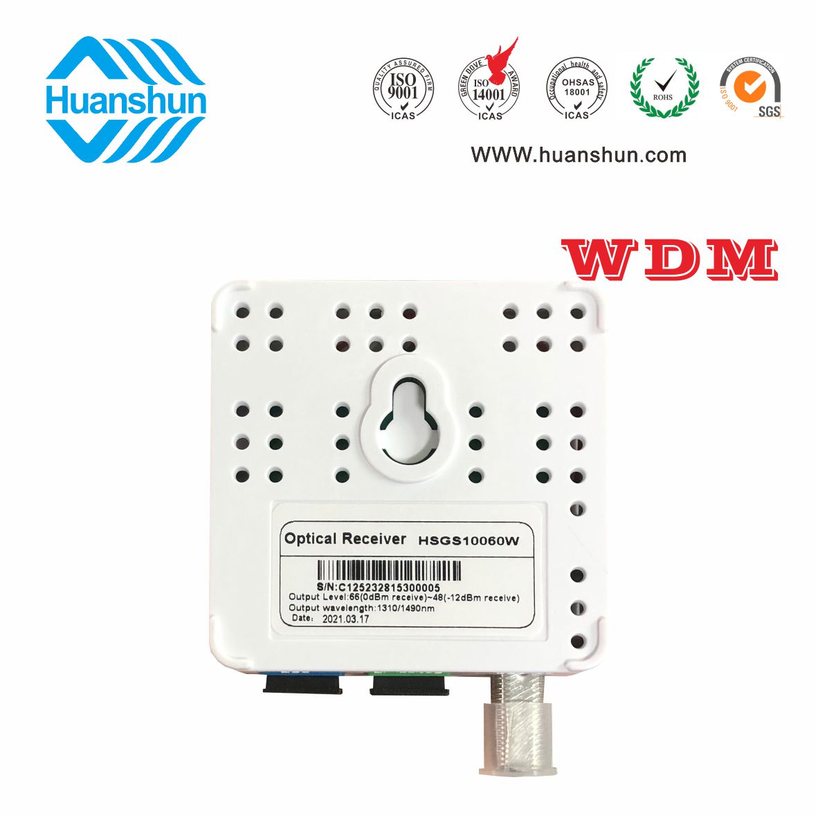 HSGS10060W/X是針對有線電視行業的特殊需求而開發的一款新穎實用的產品。它迎合被動終端接收設備的全光網絡傳輸光纖到家庭纖維和三波,并成功實現有線模擬/數字電視信號接收和數字光通信網絡數據轉換,即插即用很方便使用,無需外部電源安全性和節能。這臺機器使用了高靈敏度與WDM光電管,當收到在9 dbm轉換50 dbuv電纜模擬(數字級別42 dbuv)水平,沒有電源,功耗,節約和靈活,適合一個纖維三波光傳輸系統應用程序,不僅可以接收有線電視光傳輸信號,同時在其傳輸信號和E /GPON ONU/XPON連接。