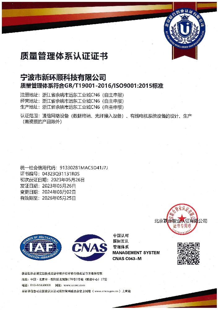 ISO9001 質(zhì)量管理體系證書